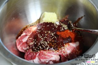- 돼지고기는 기름기가 적당히 섞인 목살이나 앞다리살이 가장 잘 어울림